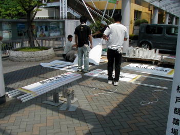 誘導看板設置作業中