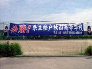 | ターポリン製 サイズW5000mm×H900mm 県立 松戸秋山高等学校野球部(現 松戸向陽) の横断幕を製作させて頂きました。 松戸向陽高等学校 ファイト!! |