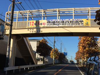| 横断幕 根木内歩道橋 | 横断幕 21世紀森の広場駐車場 |