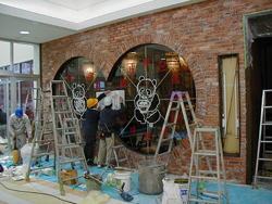 鉄骨枠取り付けから、ガラス、シート貼りまで行います。