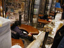 店内テーブル取り付け工事中